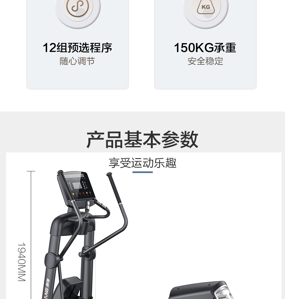 | 飞轮重量:12KG | 坡度调节:电动升降15段 | 净重/毛重:139.5KG/171.5KG | |
