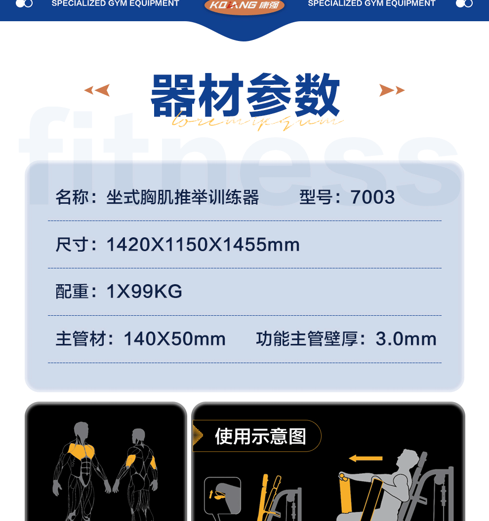 | 型号 | 坐式胸肌推举训练器7003 | ||