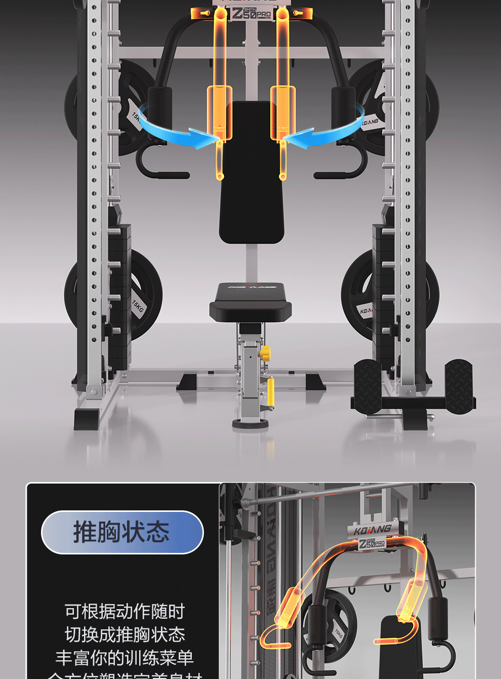 3044am永利Z50Pro史密斯机综合训练器多功能力量器械家用健身器材深蹲架 Z50Pro推胸夹胸-旗舰版